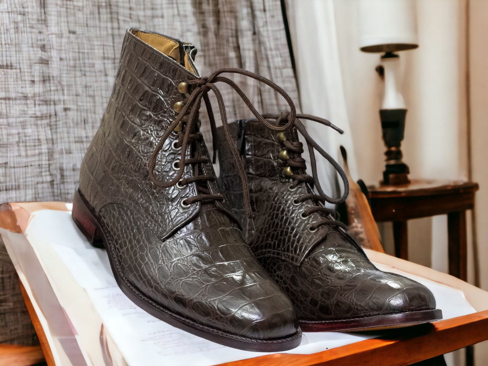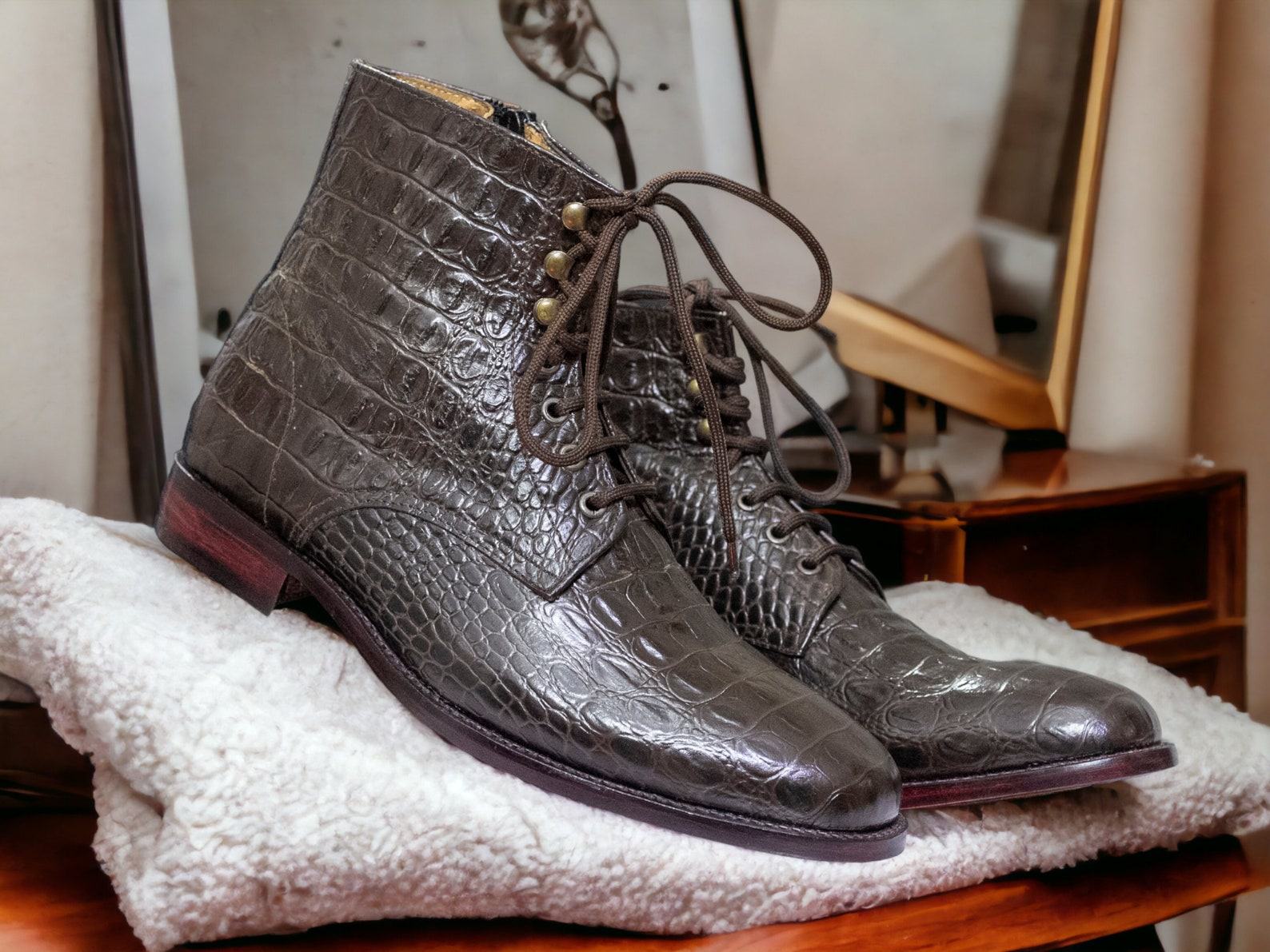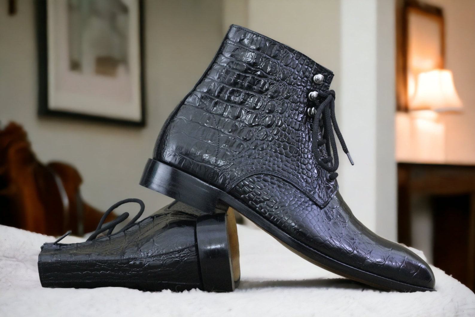 Luxury Black Alligator Ankle Boots – Men’s Handmade Goodyear Welted Leather Boots