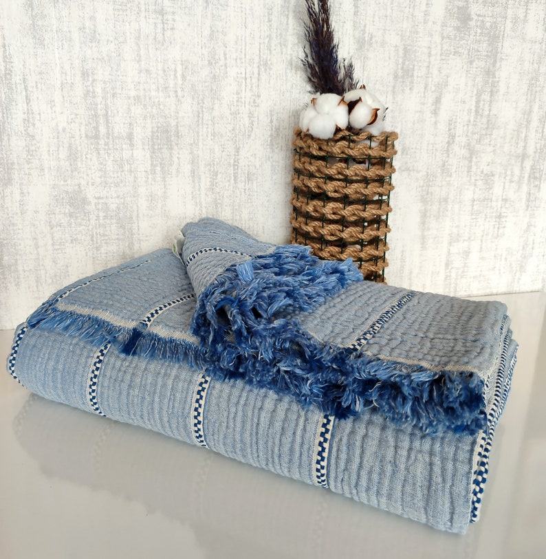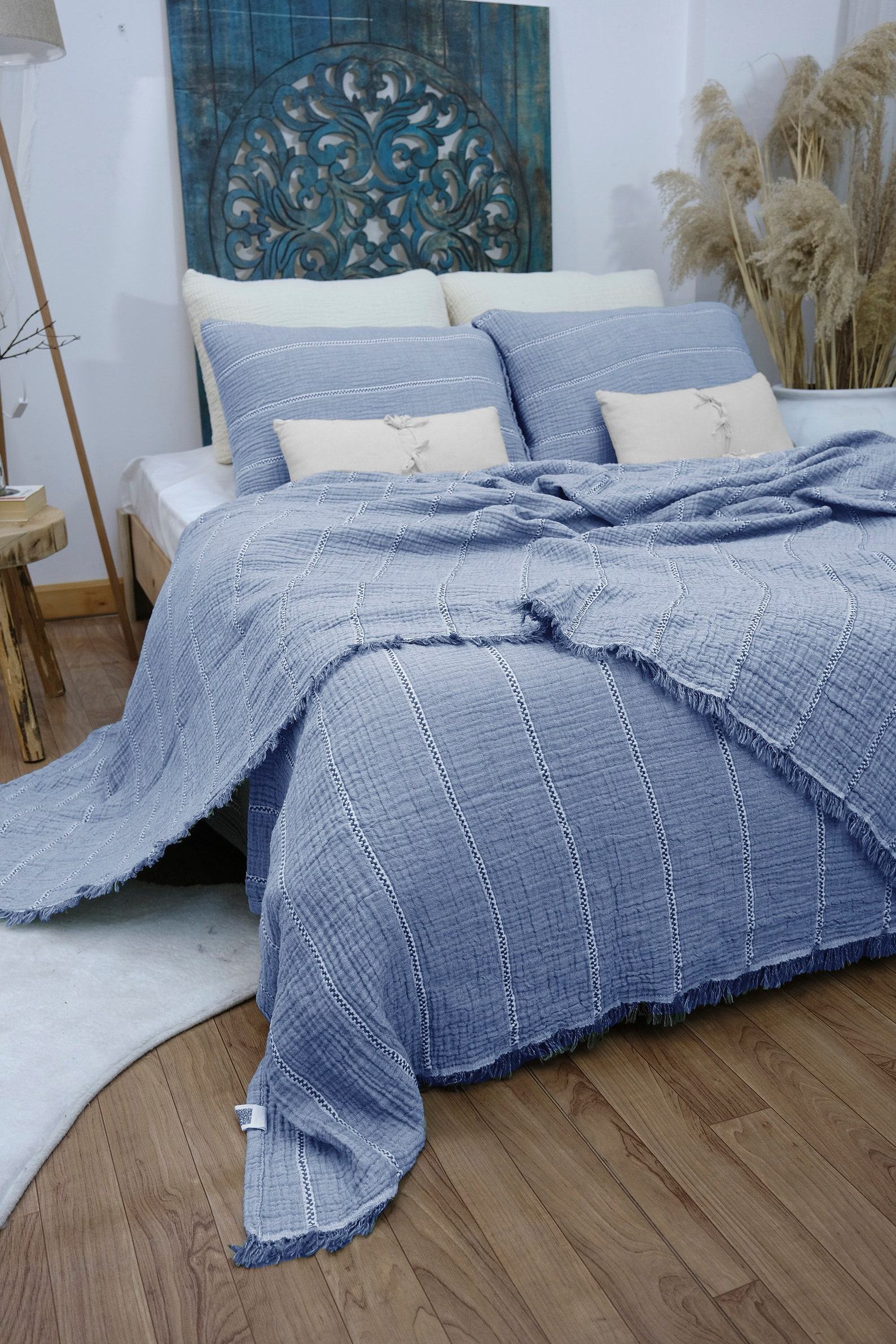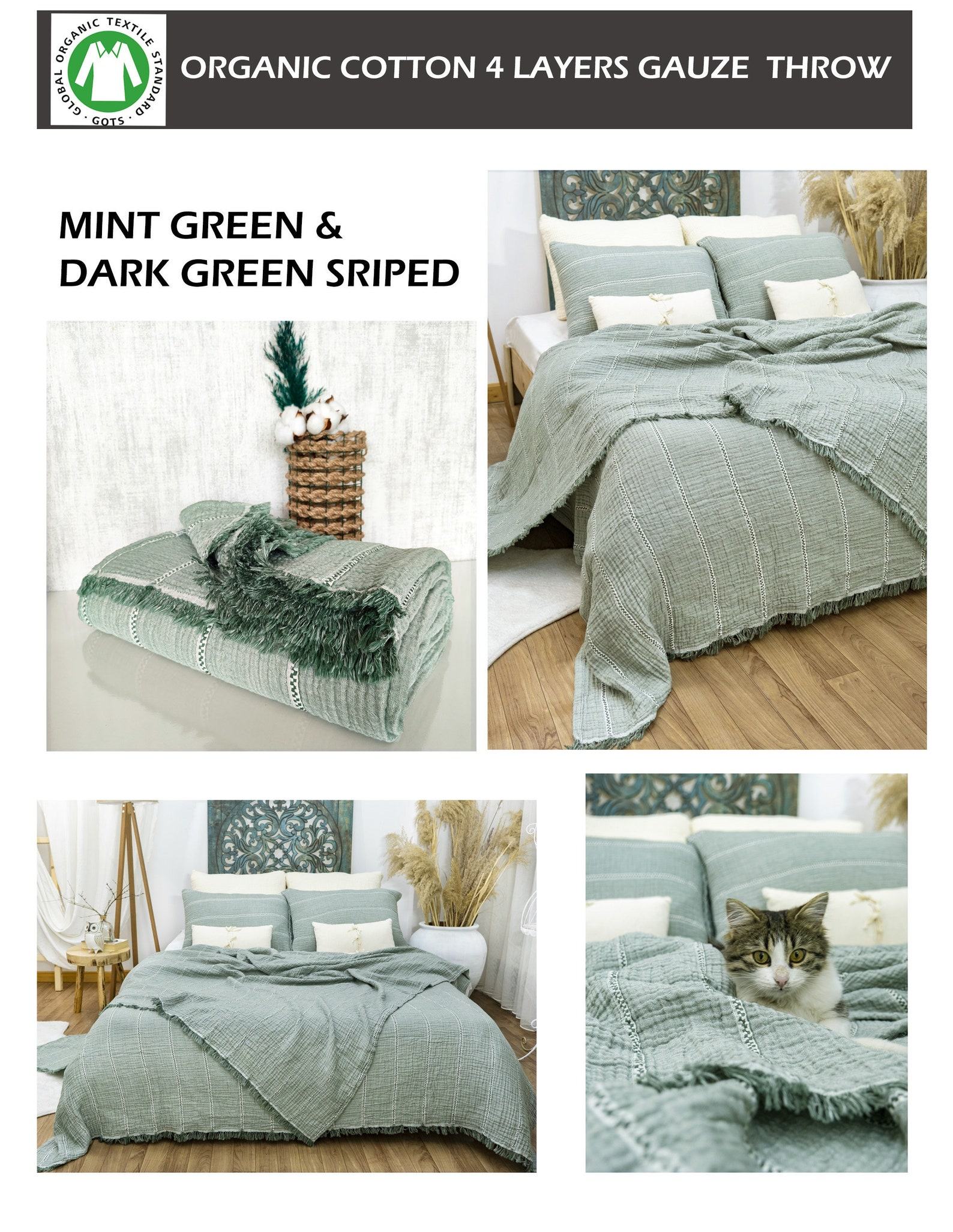 - Organic Bohemian Striped 4 layers Gauze Throw Blanket