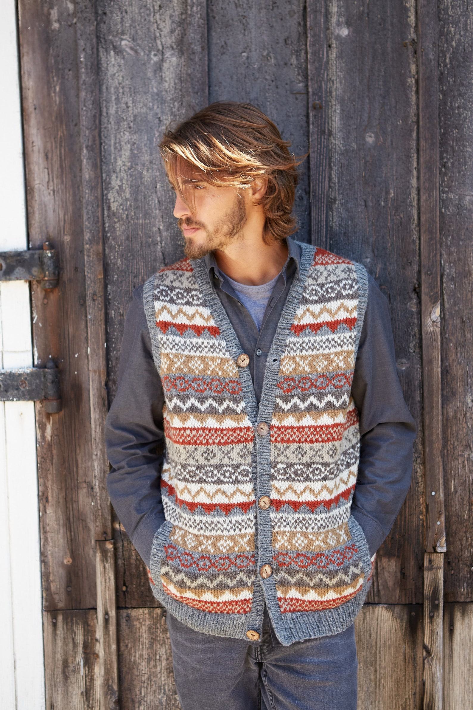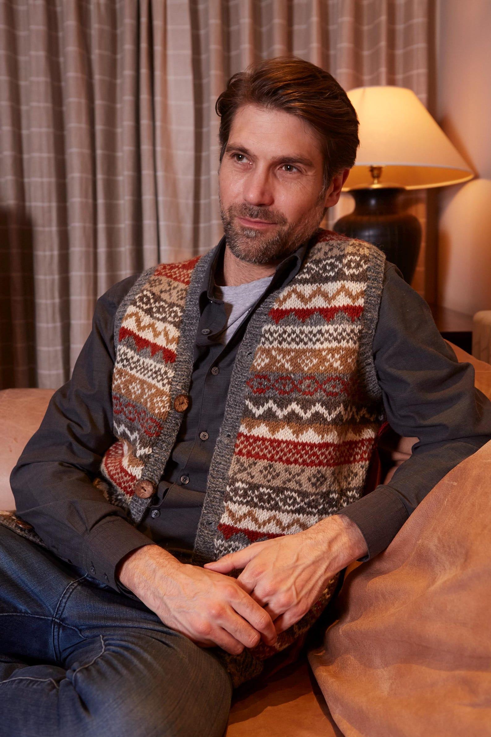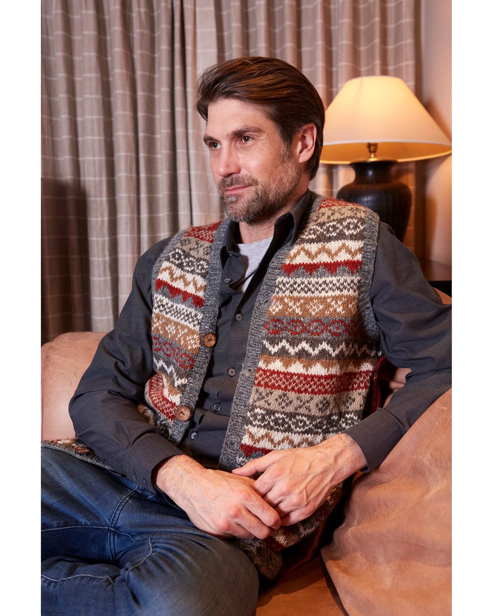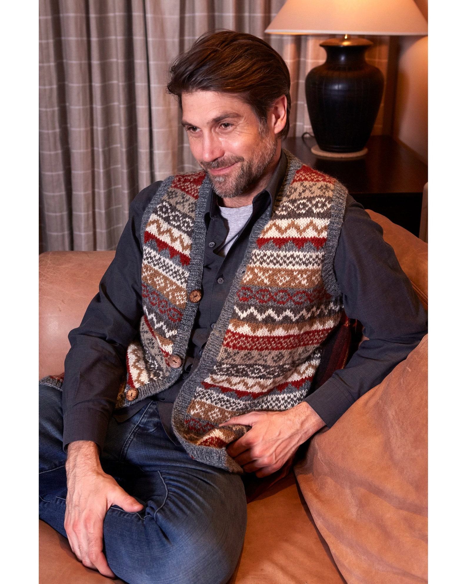 Pachamama Men’s Fair Isle Waistcoat Sustainable Wool, Coconut Buttons, Fair Trade