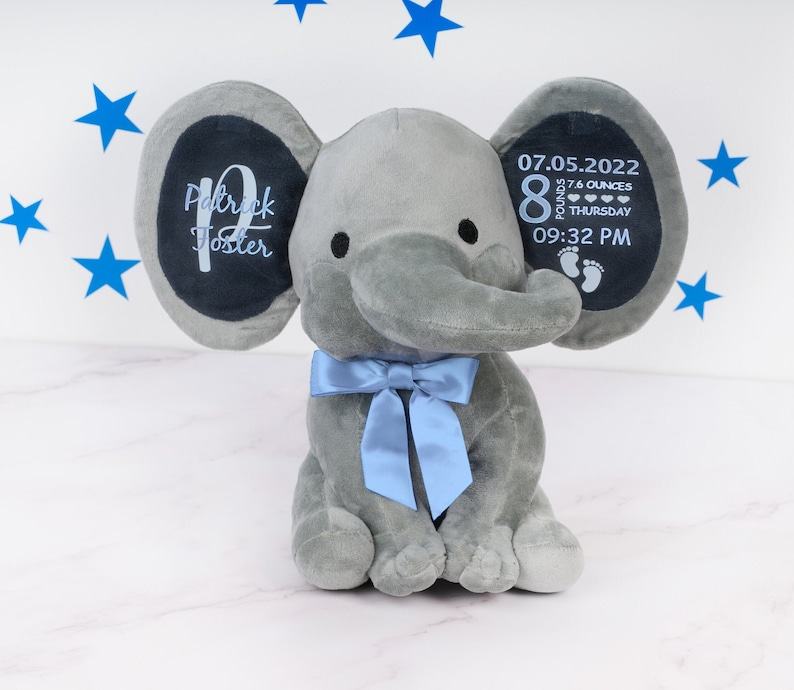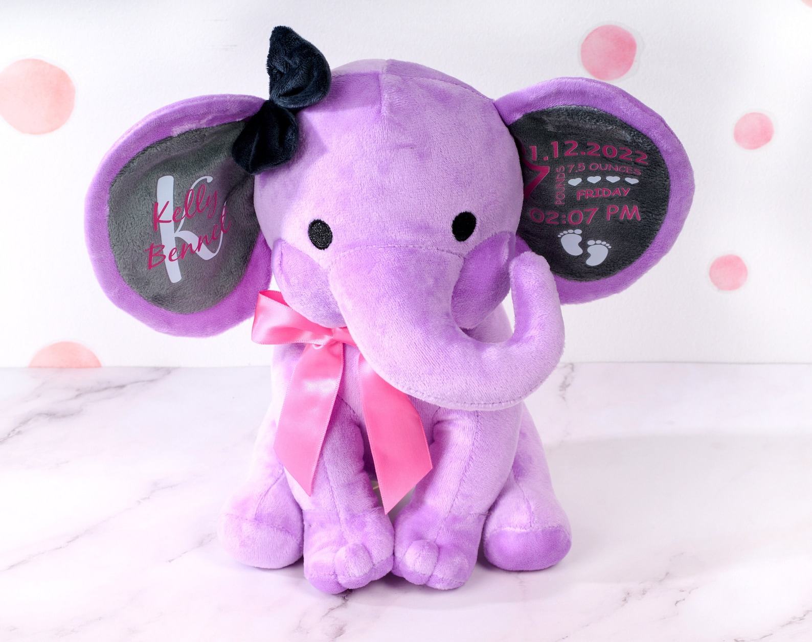 - Celebrate the arrival of a precious little one with our adorable customized elephant plush toy.