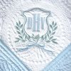 - Embroidered baby quilt with a vintage crest and 3 initials
