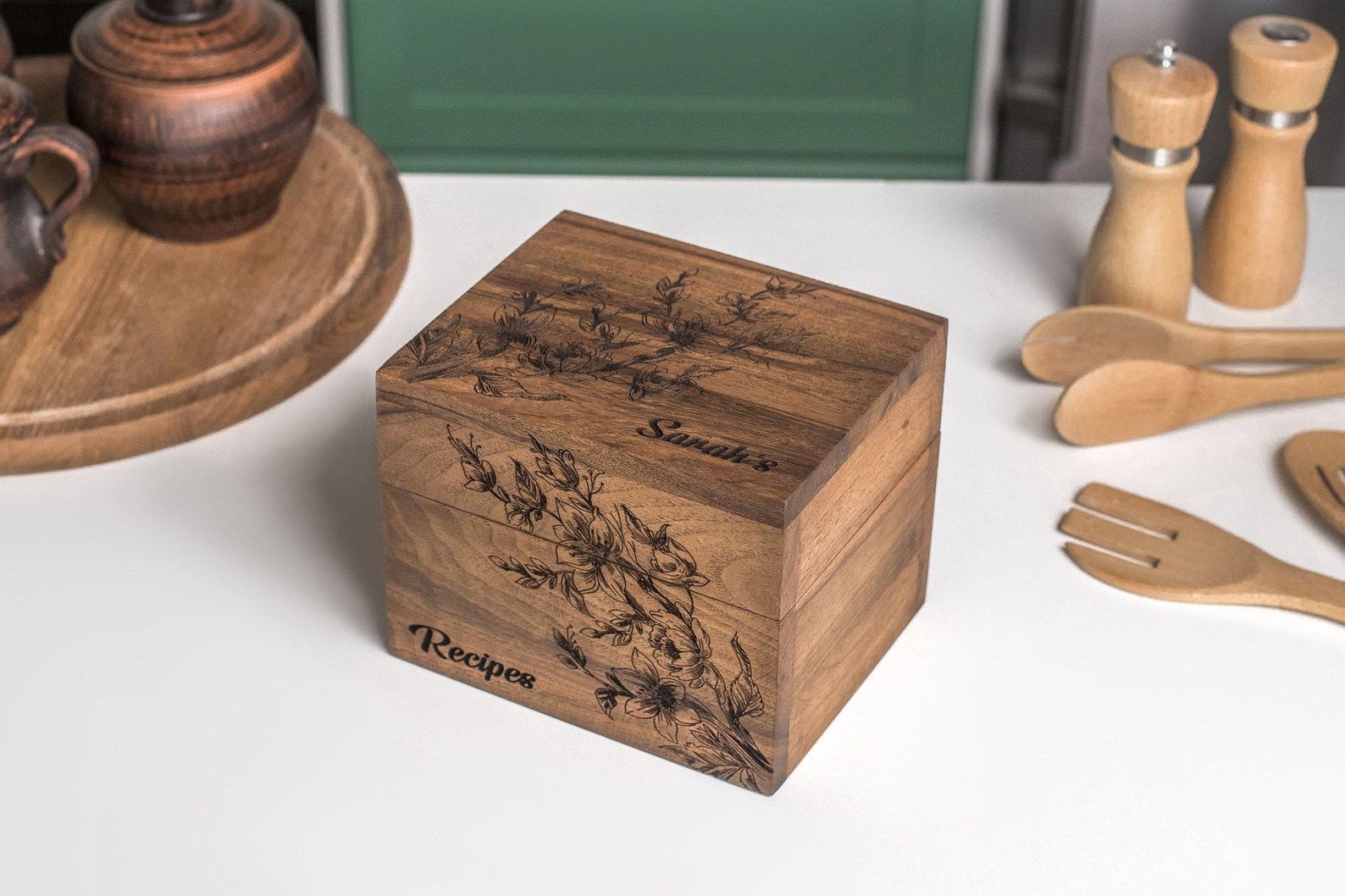 Personalized Wooden Recipe Box with Dividers and Recipe Cards A Cherished Item from Daughter to Mom