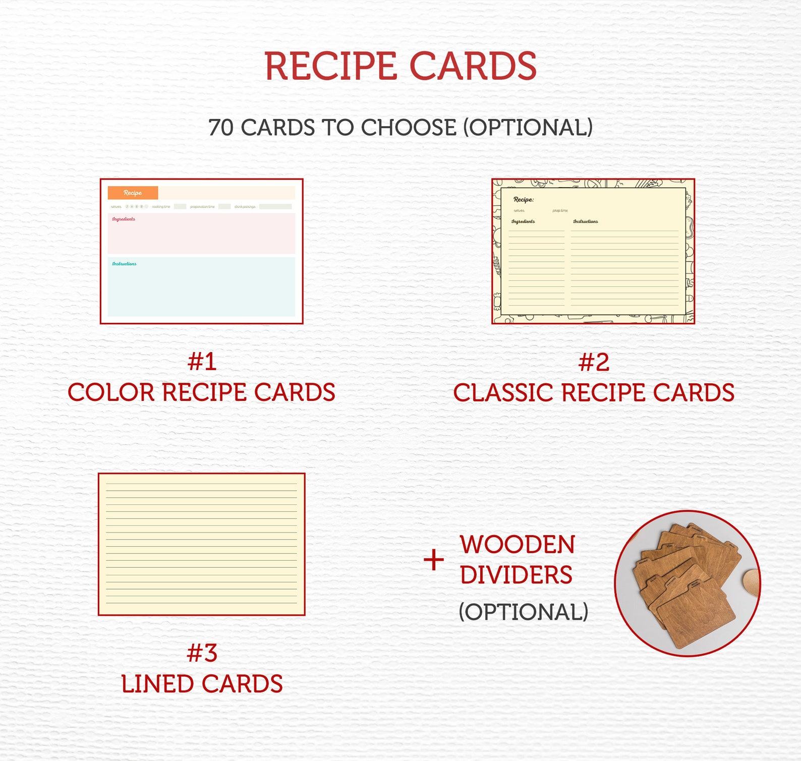 - Includes 24 blank recipe cards (4×6 inches) to get you started.