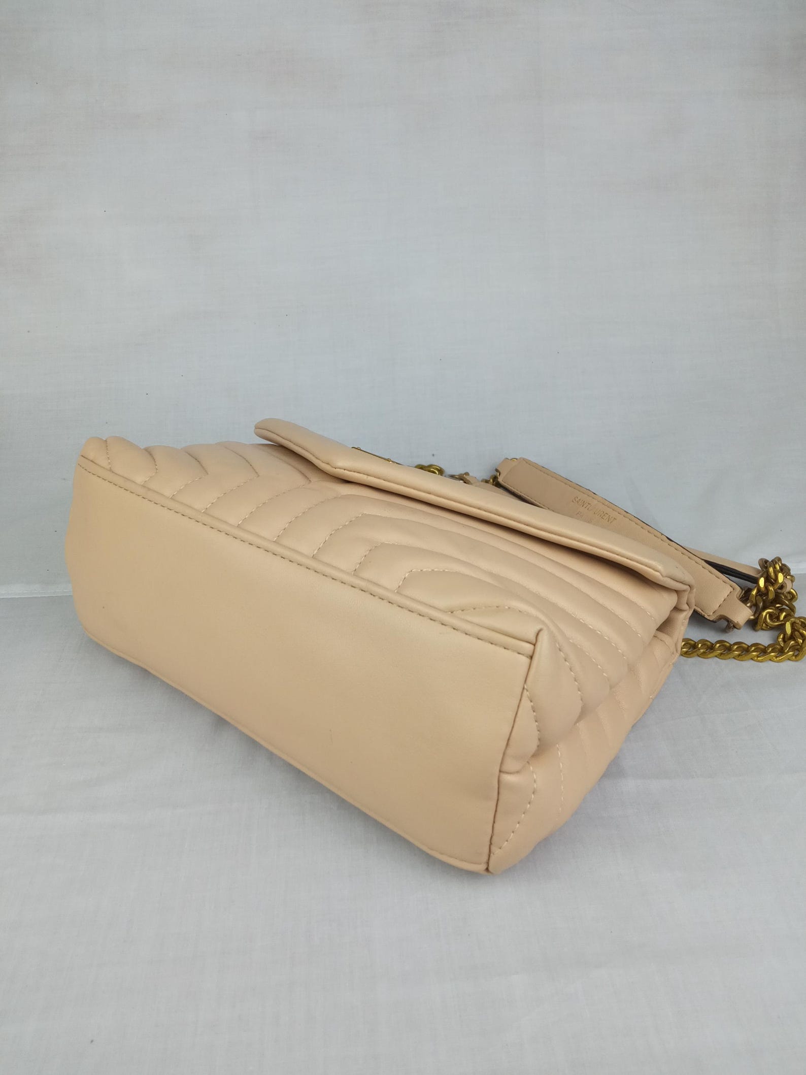 - Adorned with the iconic YSL logo plaque in gold-tone hardware.