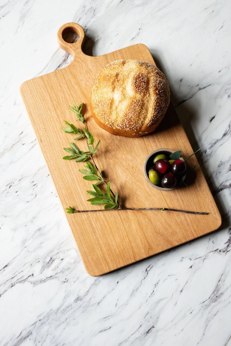 Premium Farmhouse Cutting Board Solid Cherry Wood, Organic Finish, No Glue, with Handle
