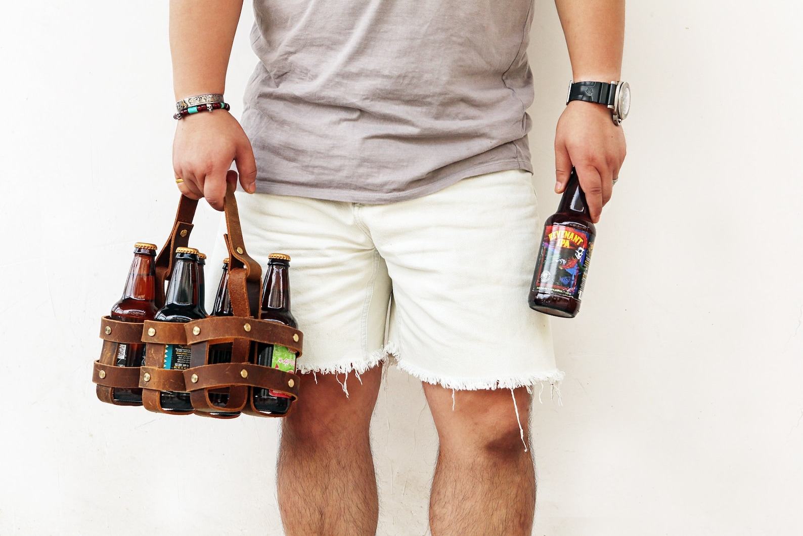 - Carry up to 6 beers on your bike with this leather beer carrier.