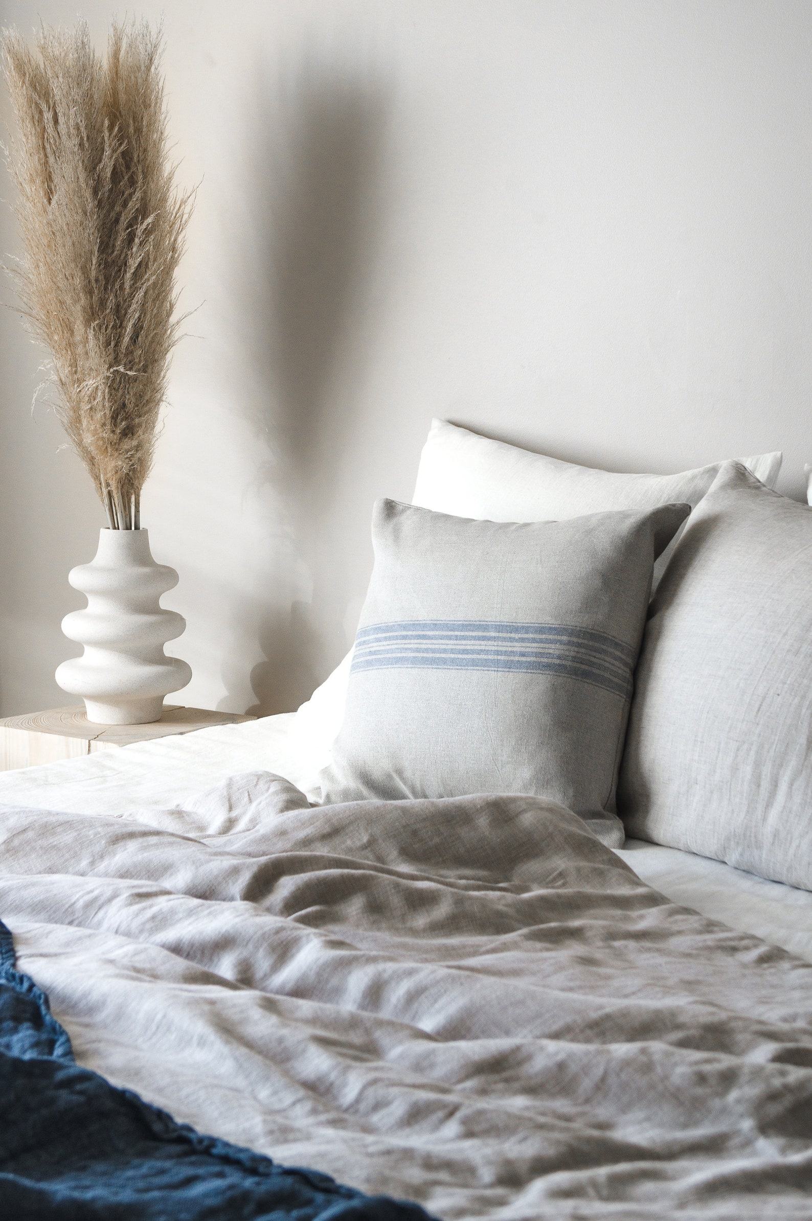 Rustic Linen Pillowcase Duo Blue Striped Elegance for Your Home $14.08