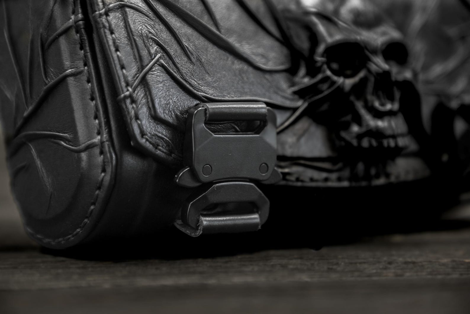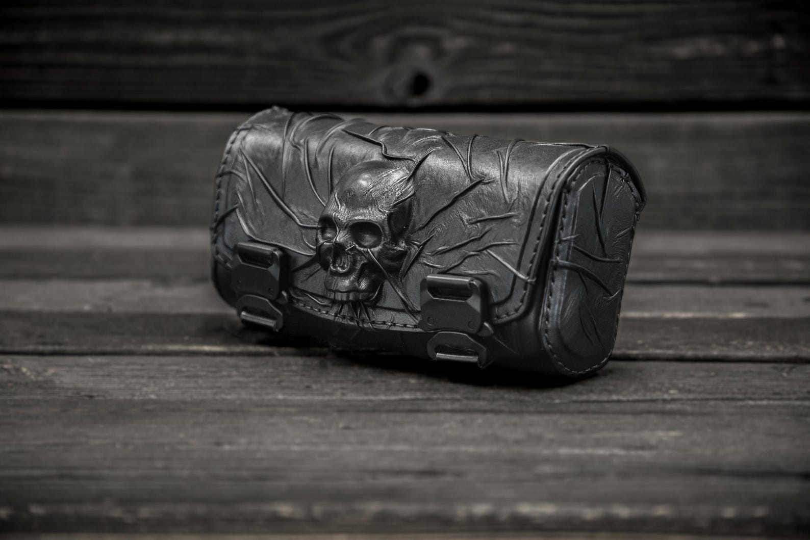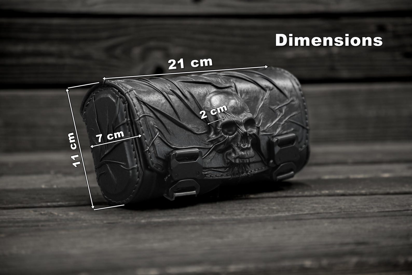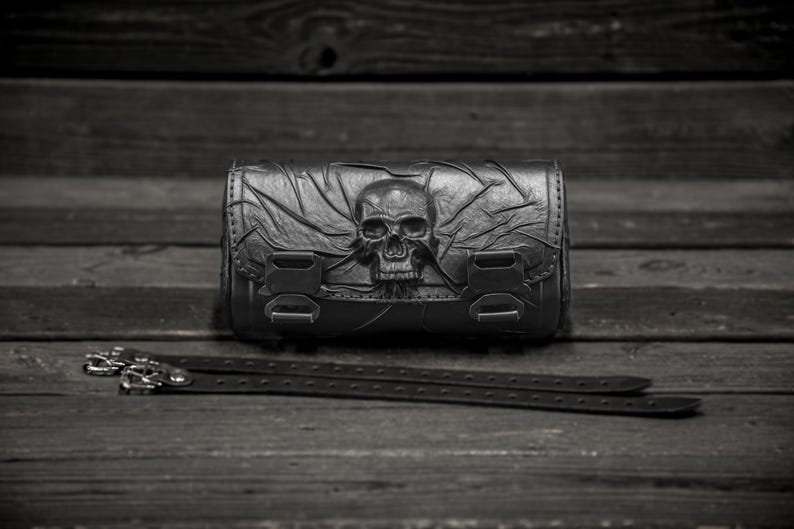 Skull-Emblazoned Leather Motorcycle Accessory Collection Fork Bag, Tool Bag, Front Bag, and Bar Bag $23.80