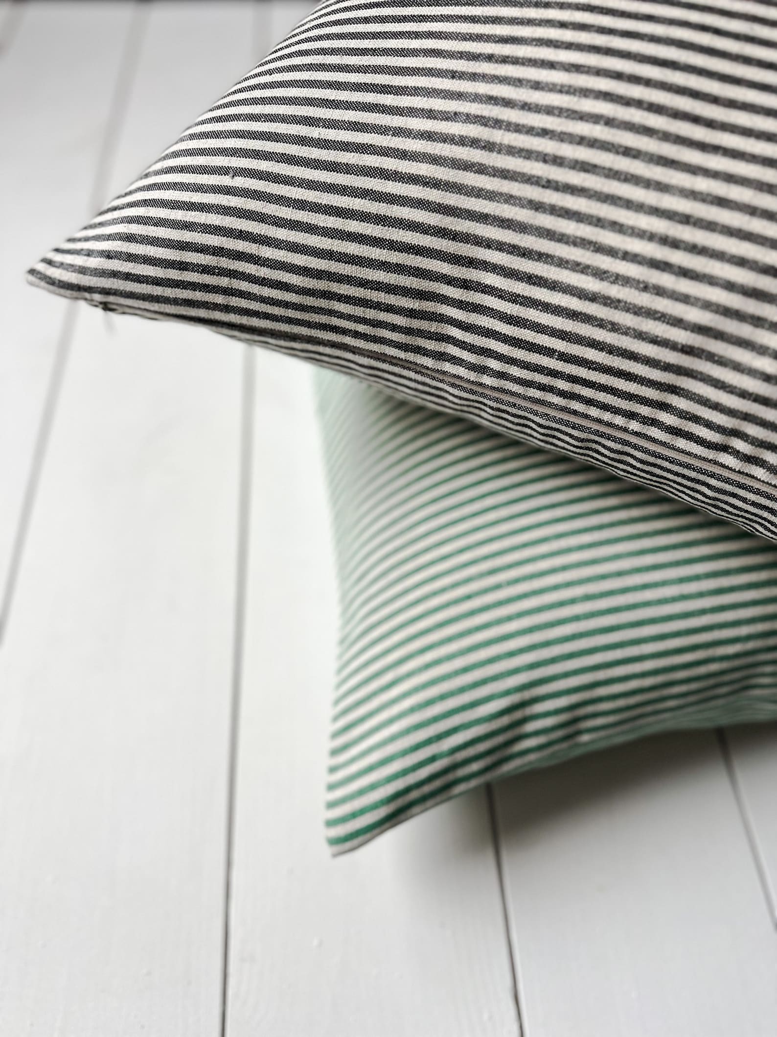 - Charming striped linen pillowcase in vibrant blue, green, red, and black