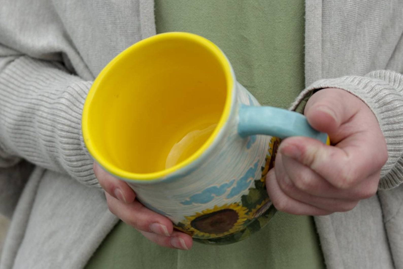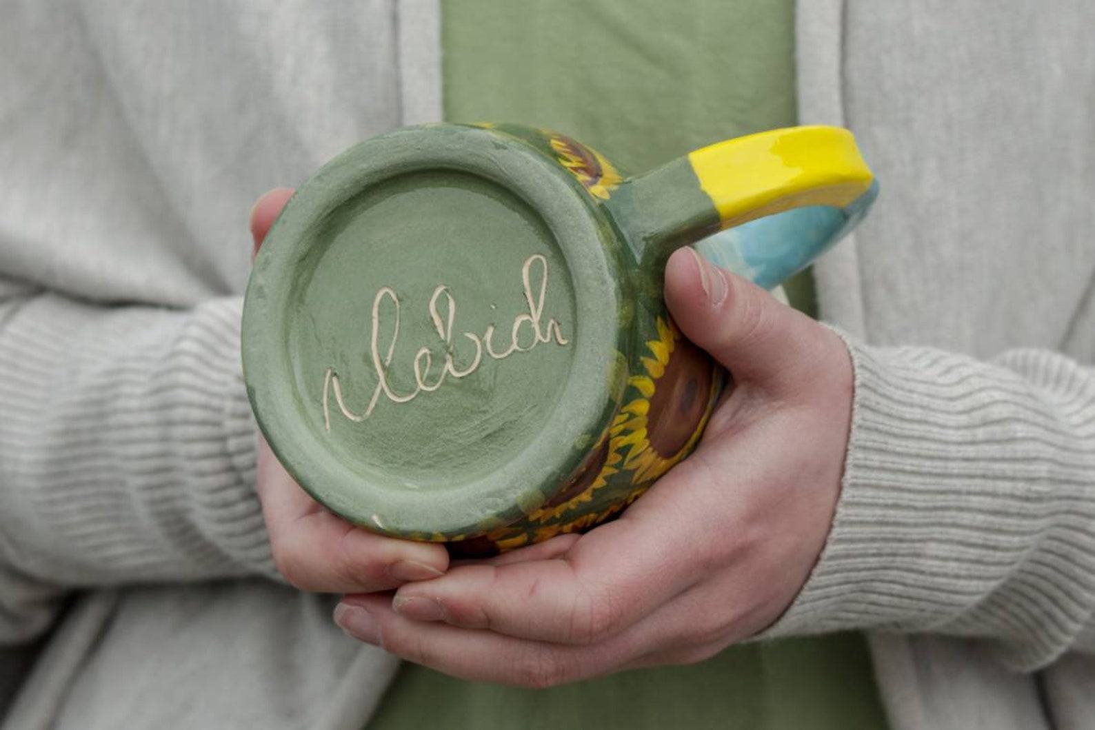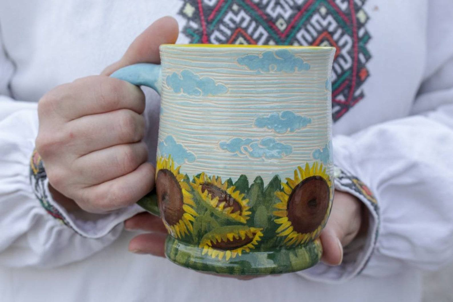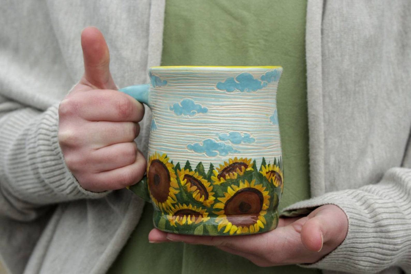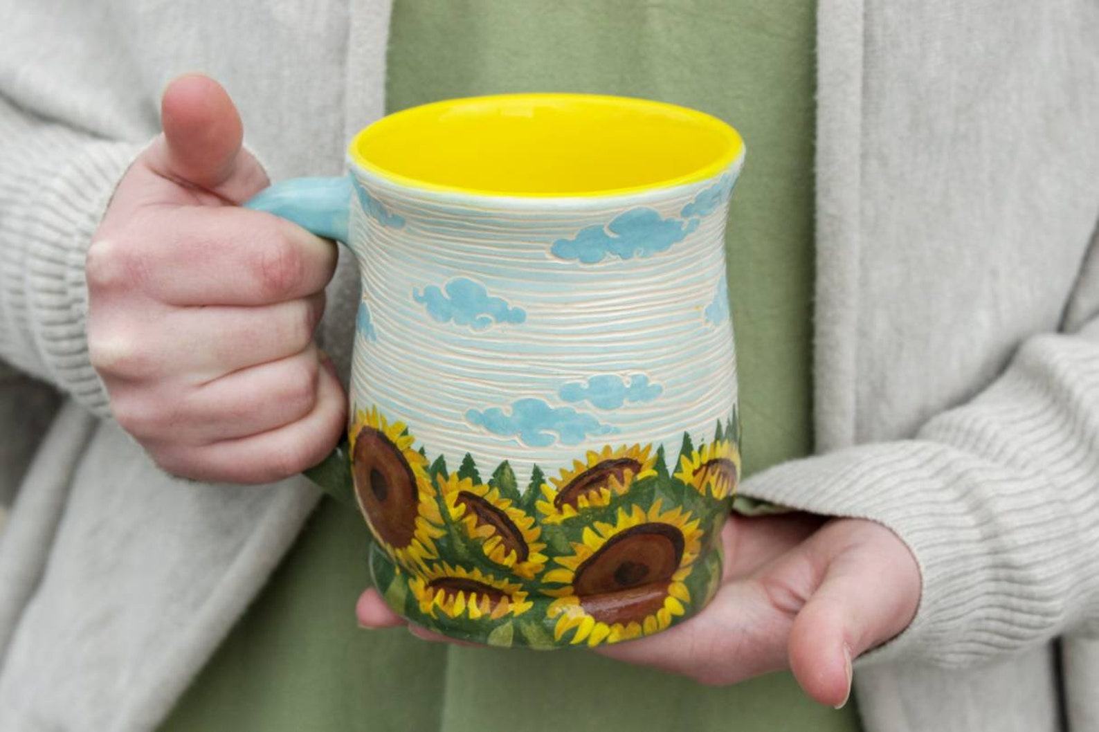 - Celebrate Ukrainian heritage and resilience with this vibrant sunflower pottery mug.