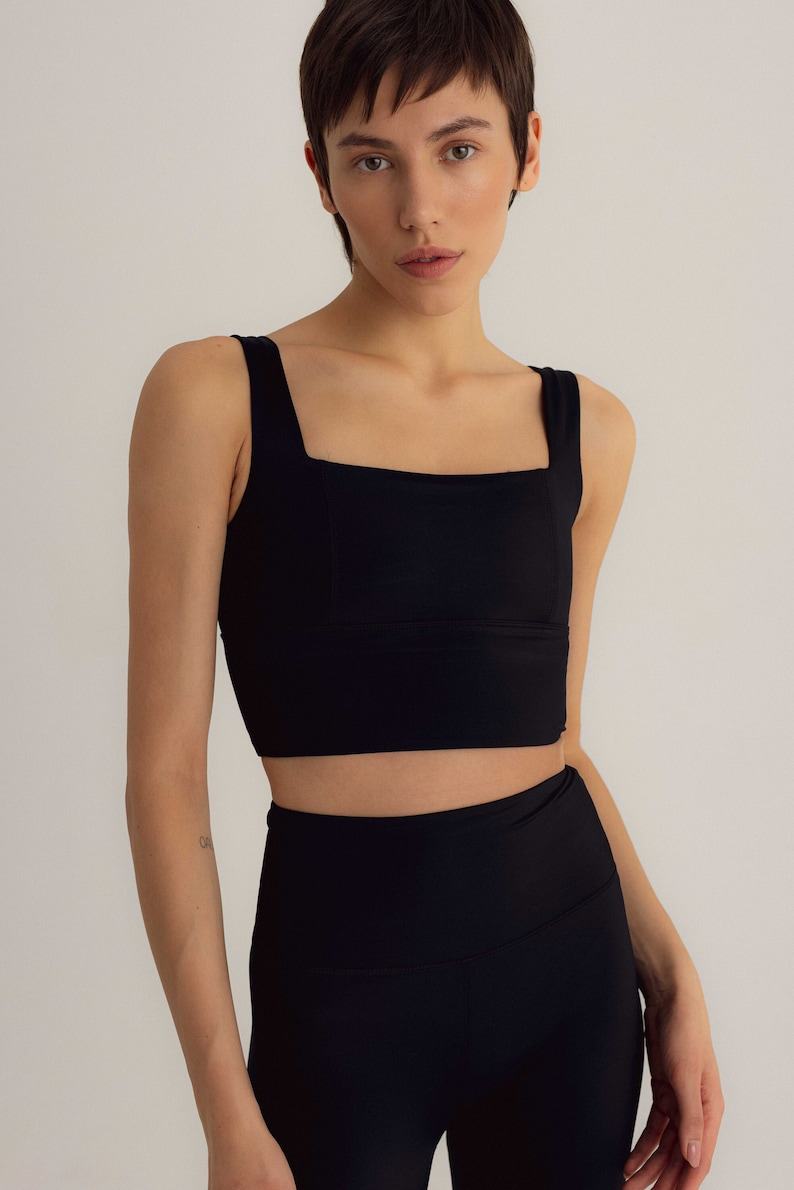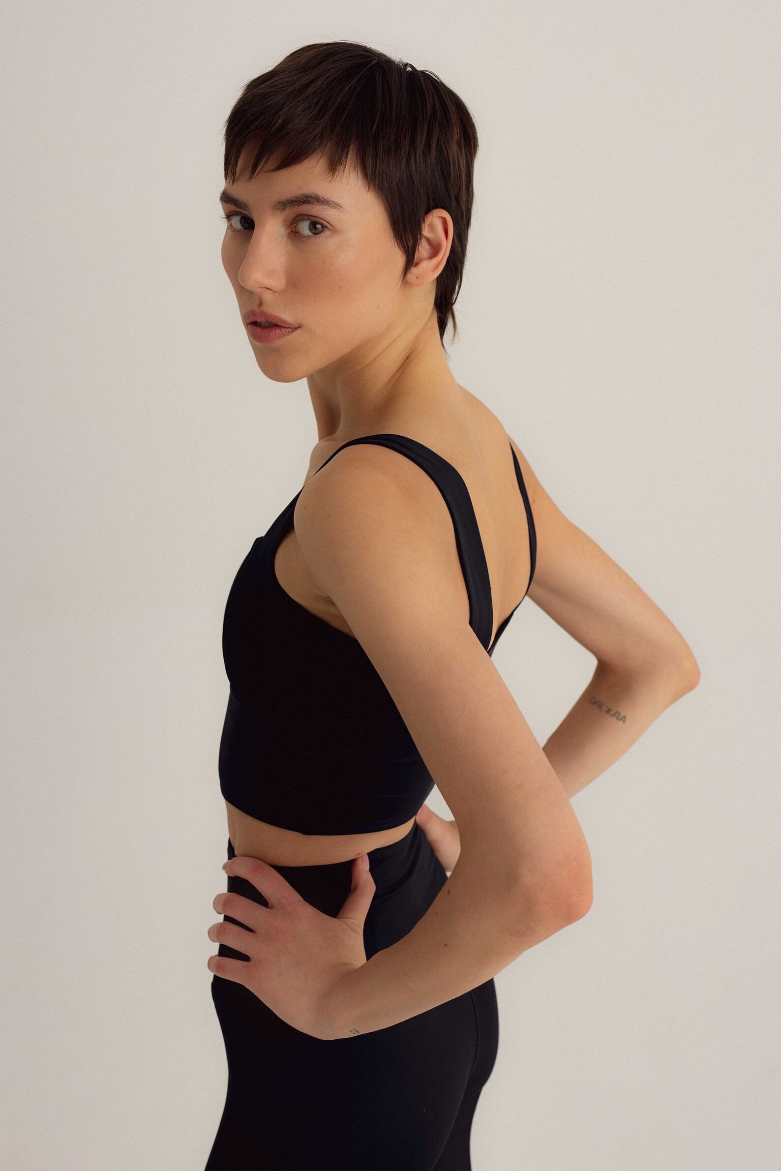 Sustainable Style Elevate Your Workouts with Our Black ECONYL Crop Top