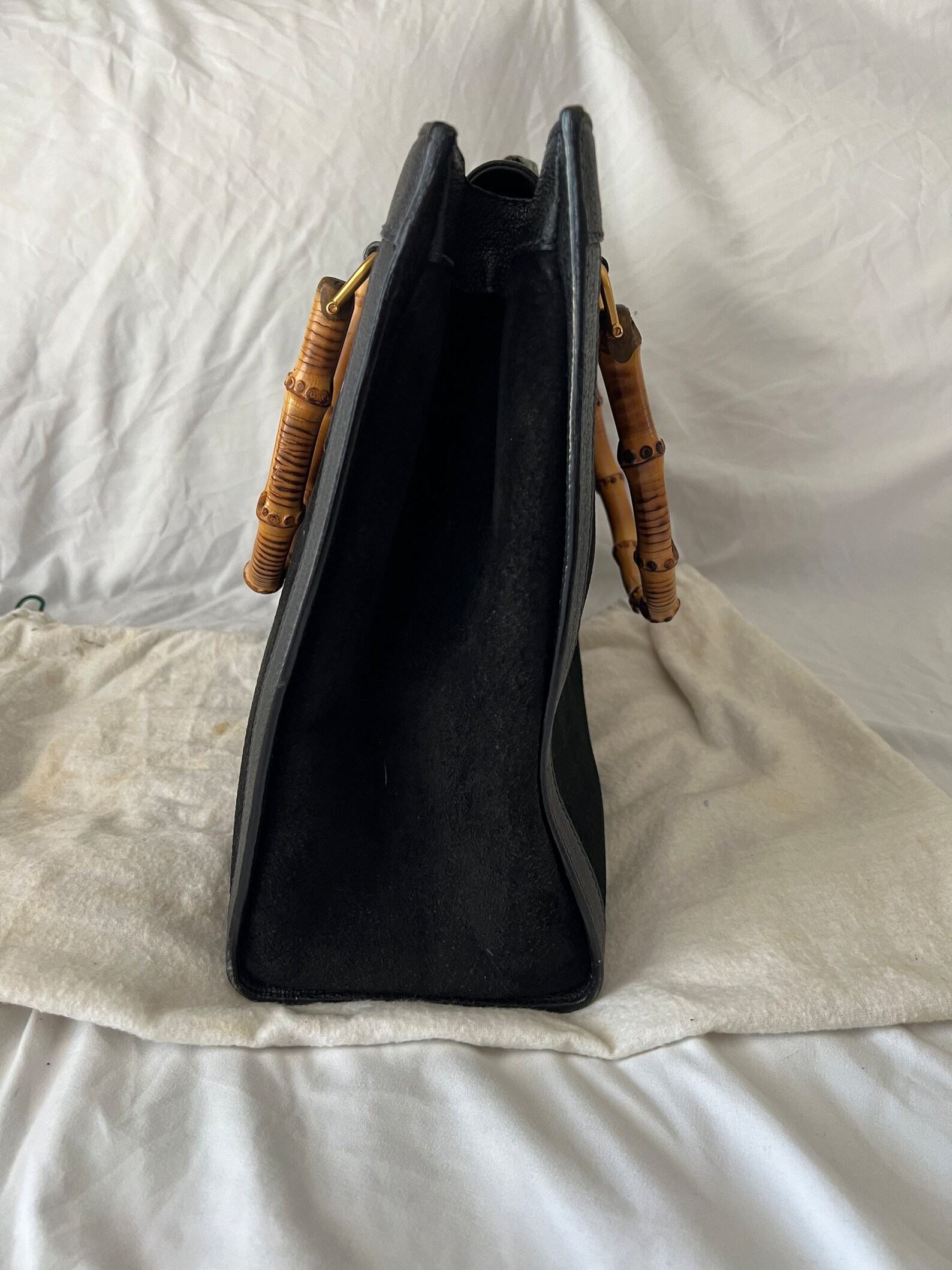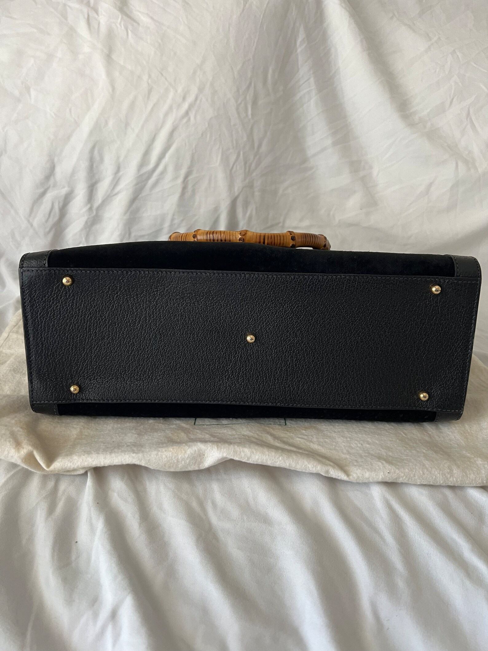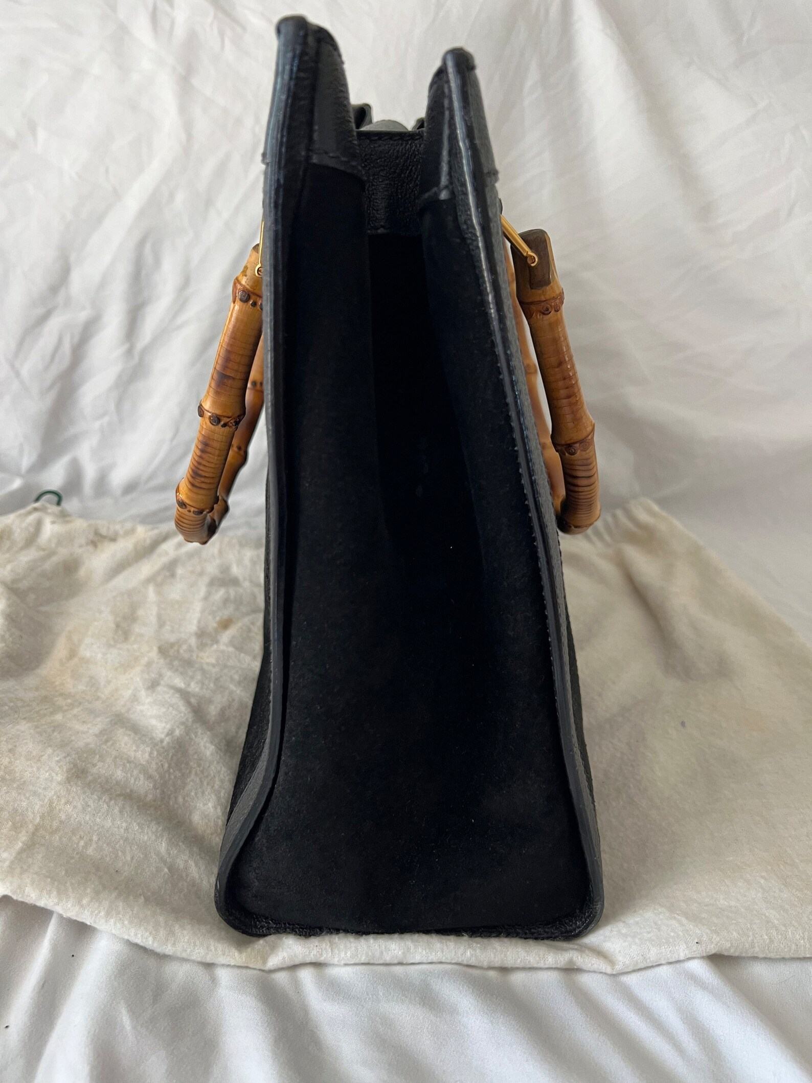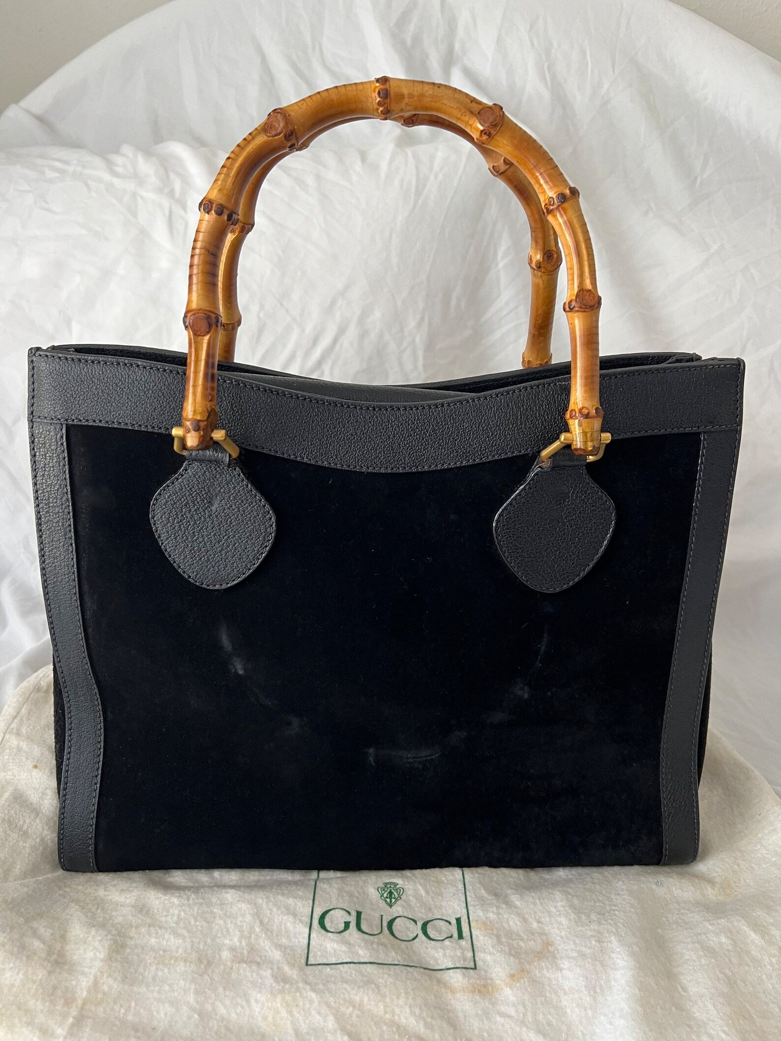 Timeless Elegance Vintage Gucci Diana Black Suede and Leather Handbag with Iconic Bamboo Handle