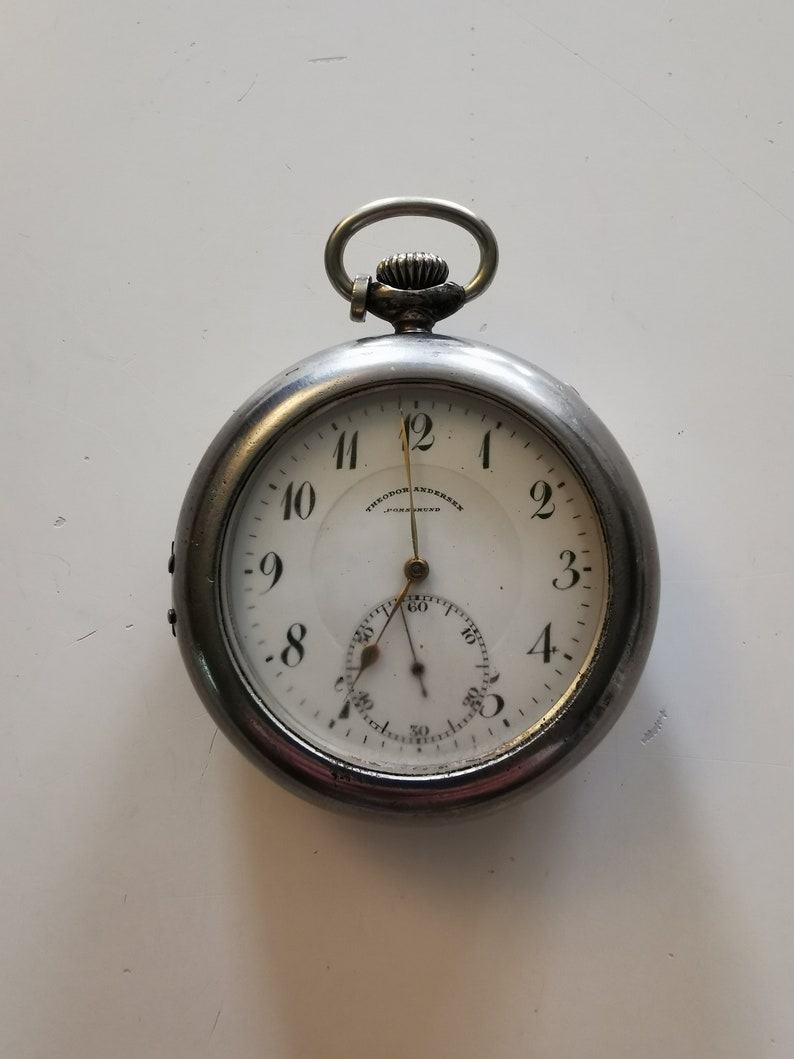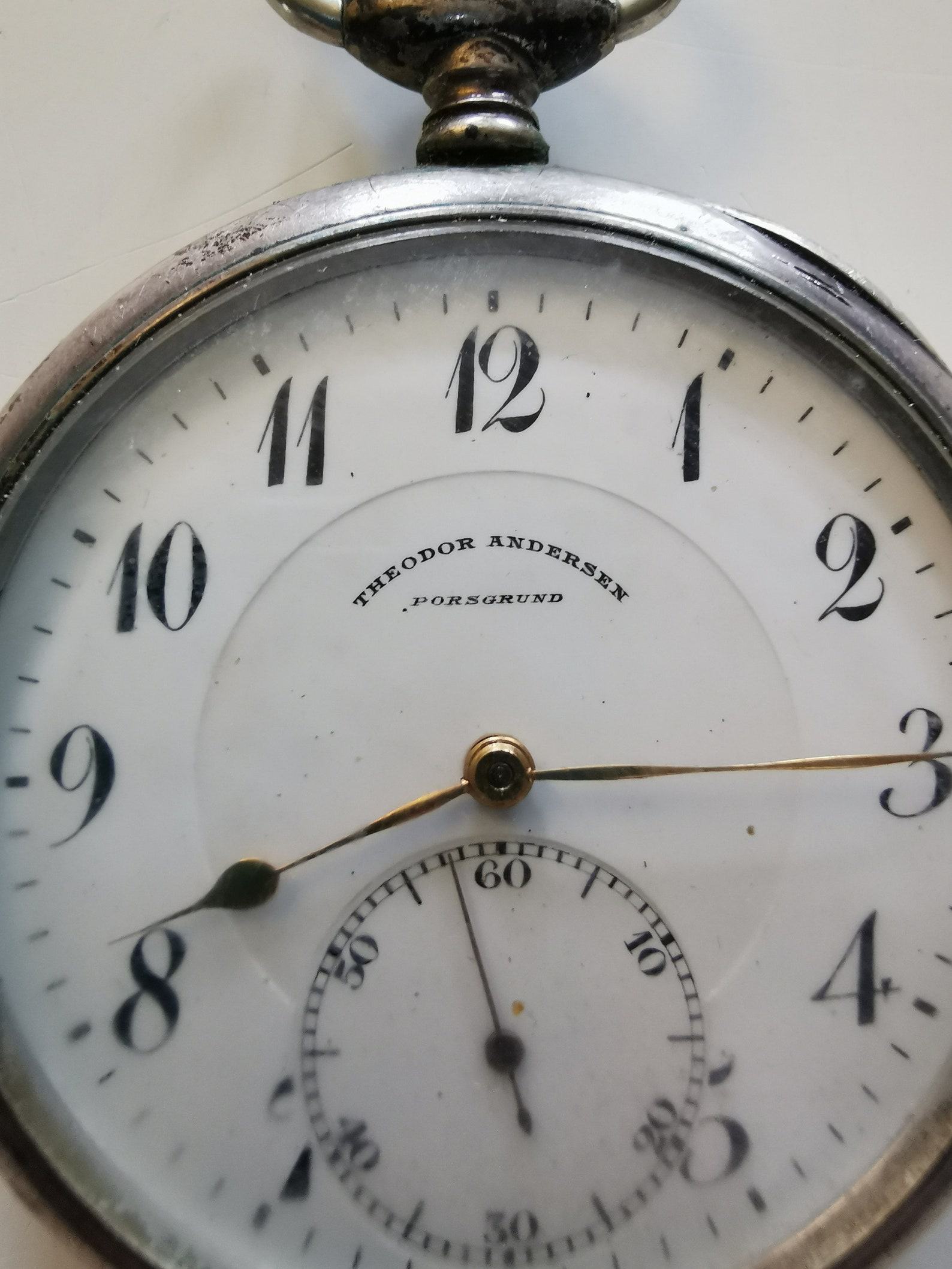 - Vintage Norwegian silver pocket watch, crafted by renowned silversmith Theodor Andersen Porsgrund.