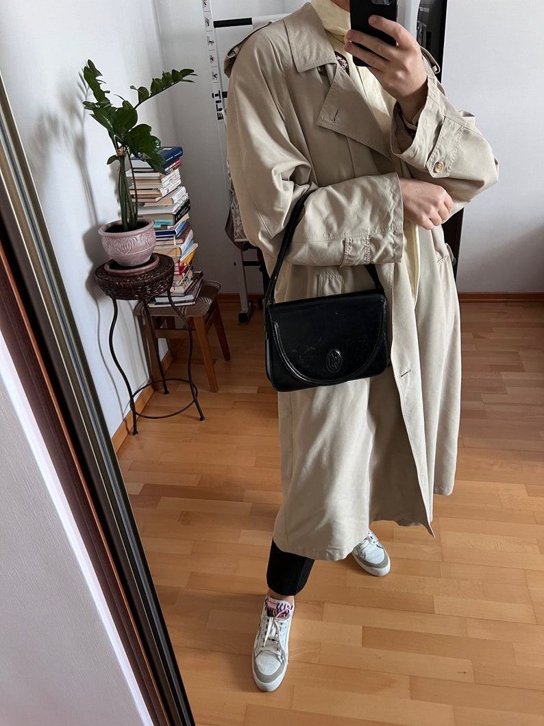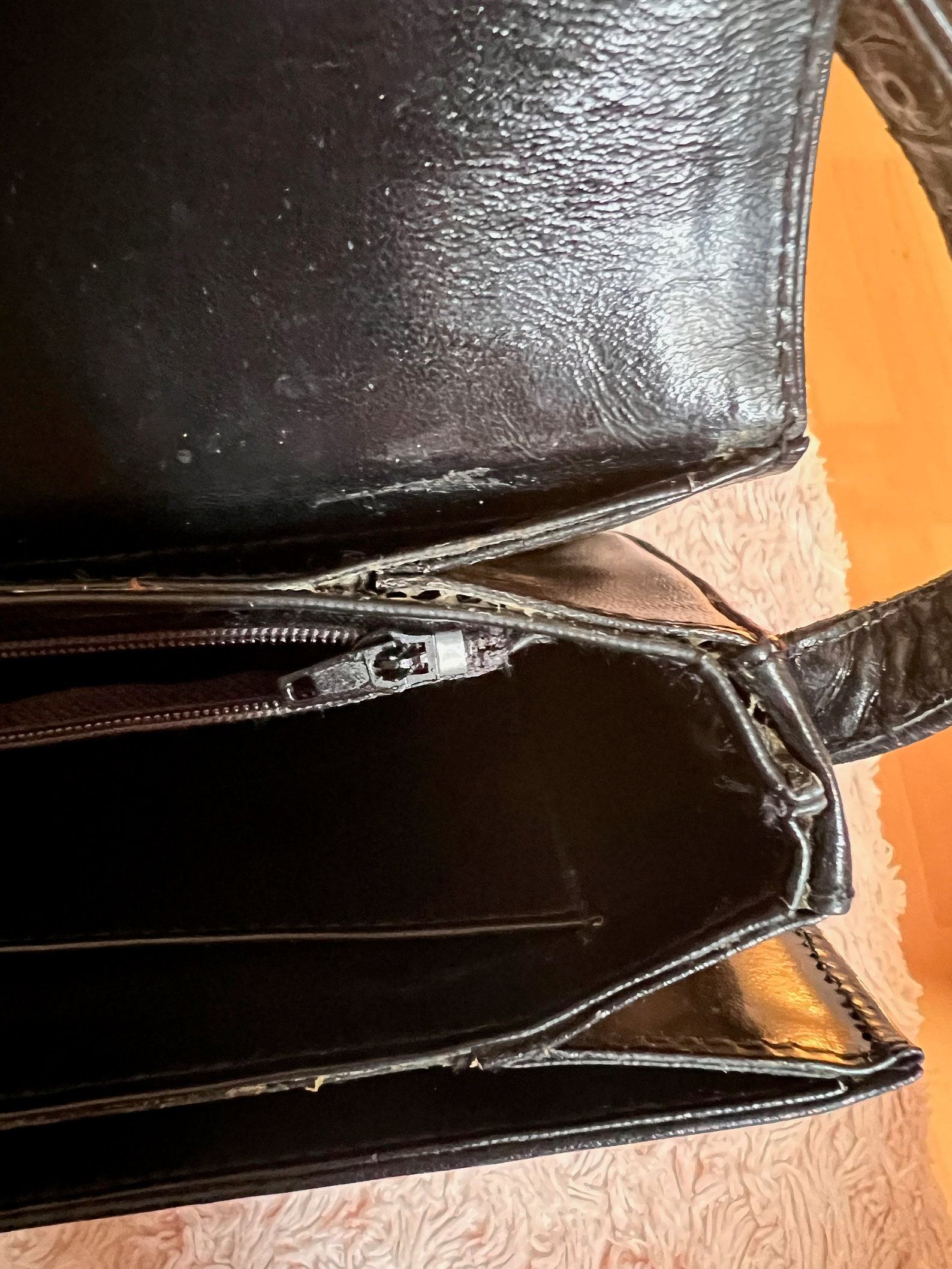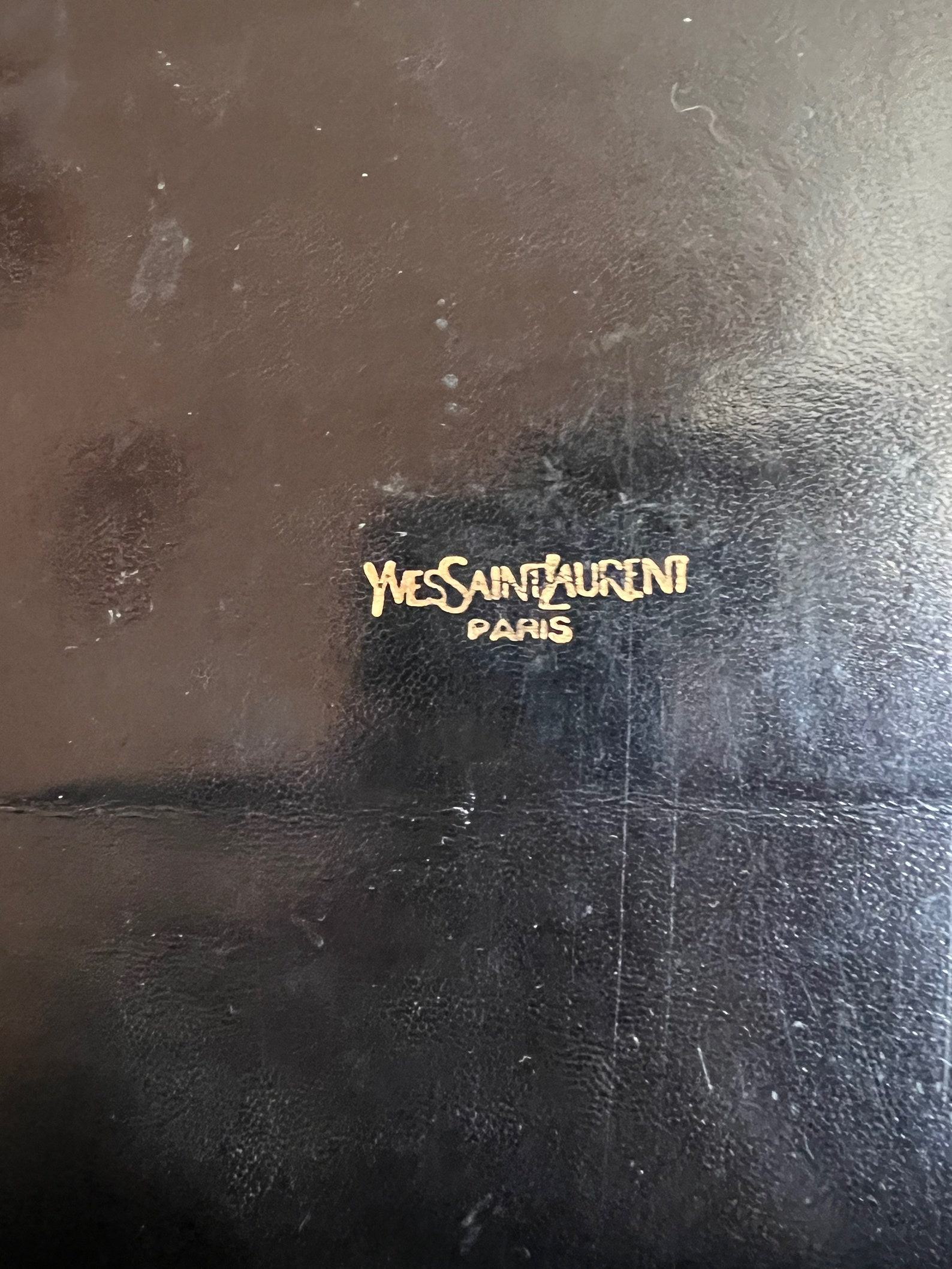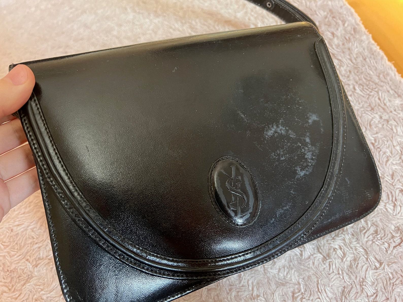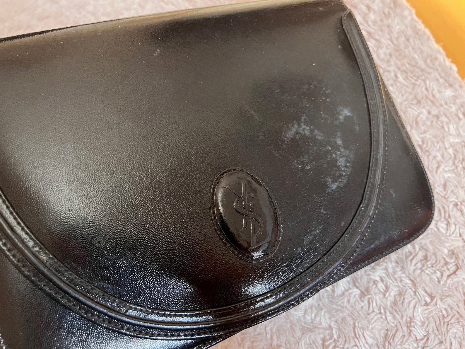 - Vintage Yves Saint Laurent black leather shoulder bag from the 1980s.
