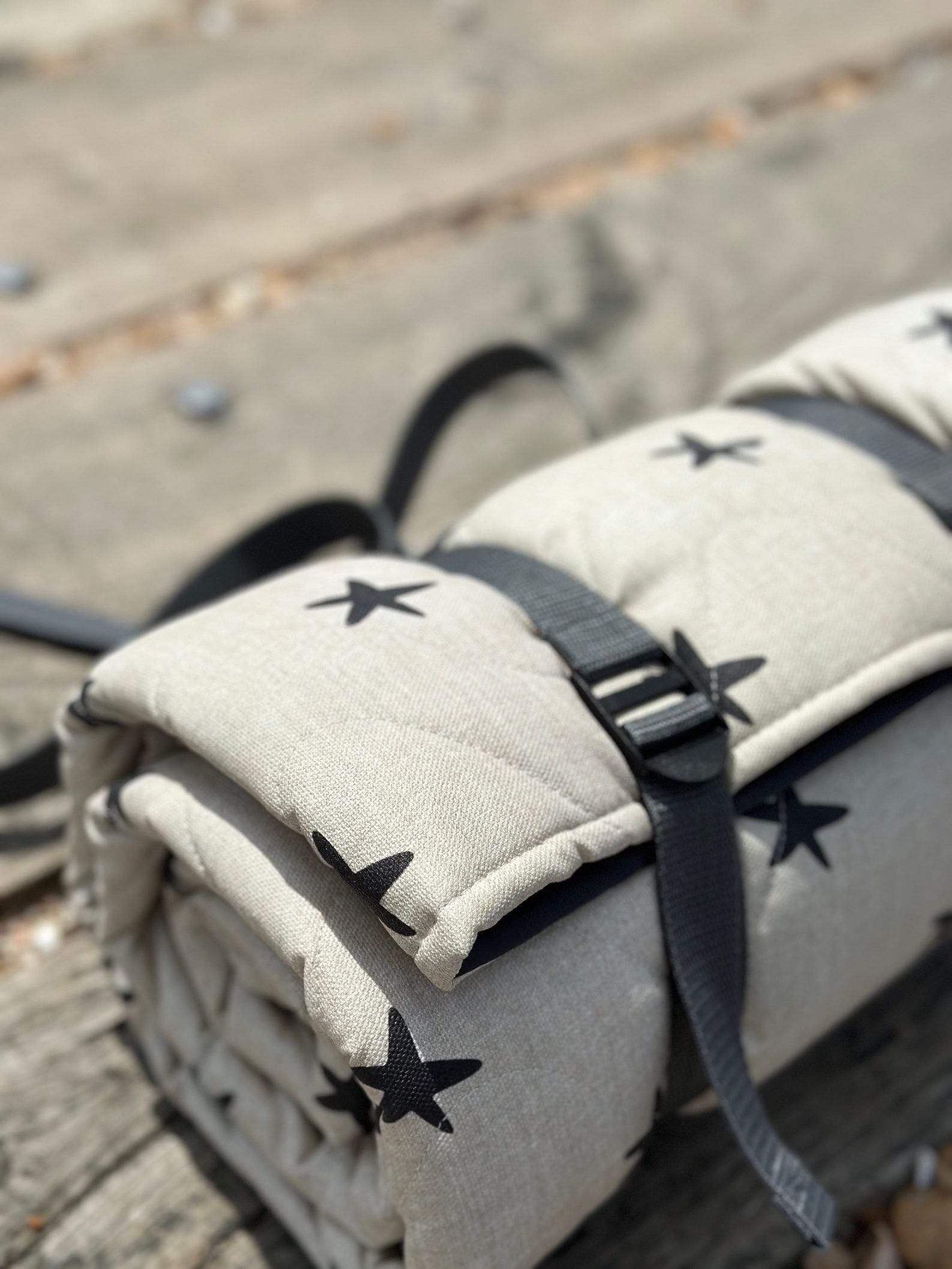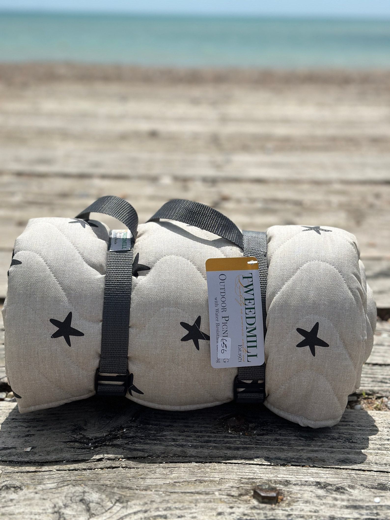 Tweedmill Newbury Quilted Picnic Blanket Waterproof, Cotton, UK-Made, Neutral Stars