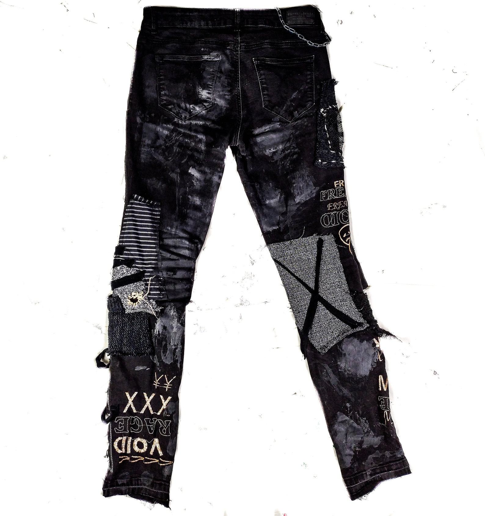 Unleash Your Inner Rebel Custom Handmade Punk Rock Goth Emo Metal Cyber Dark Ripped Crazy Weird Funky Crust Festival Jeans for the Vegan Cyber Warrior