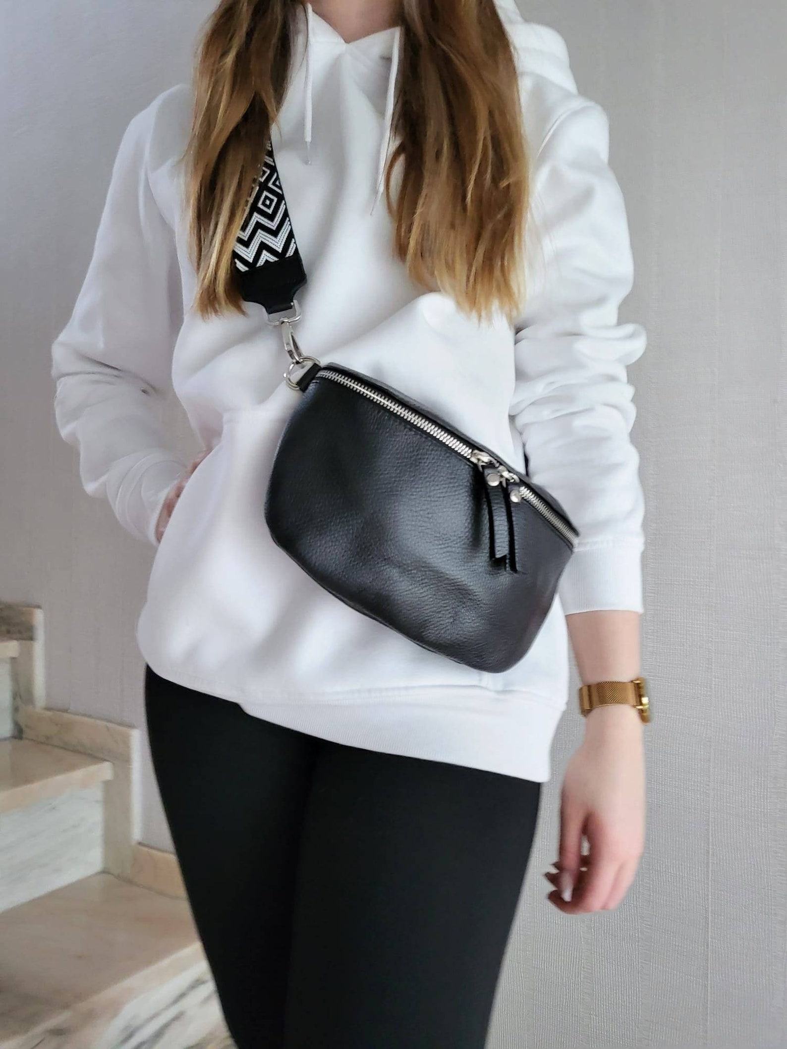 Versatile Leather Crossbody Bag Double Zipper, Adjustable Strap, and Belt Loop $34.40