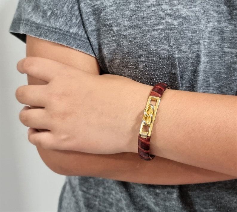 Vintage 1980s Gucci Style Burgundy Snake Skin Leather Chain Bracelet