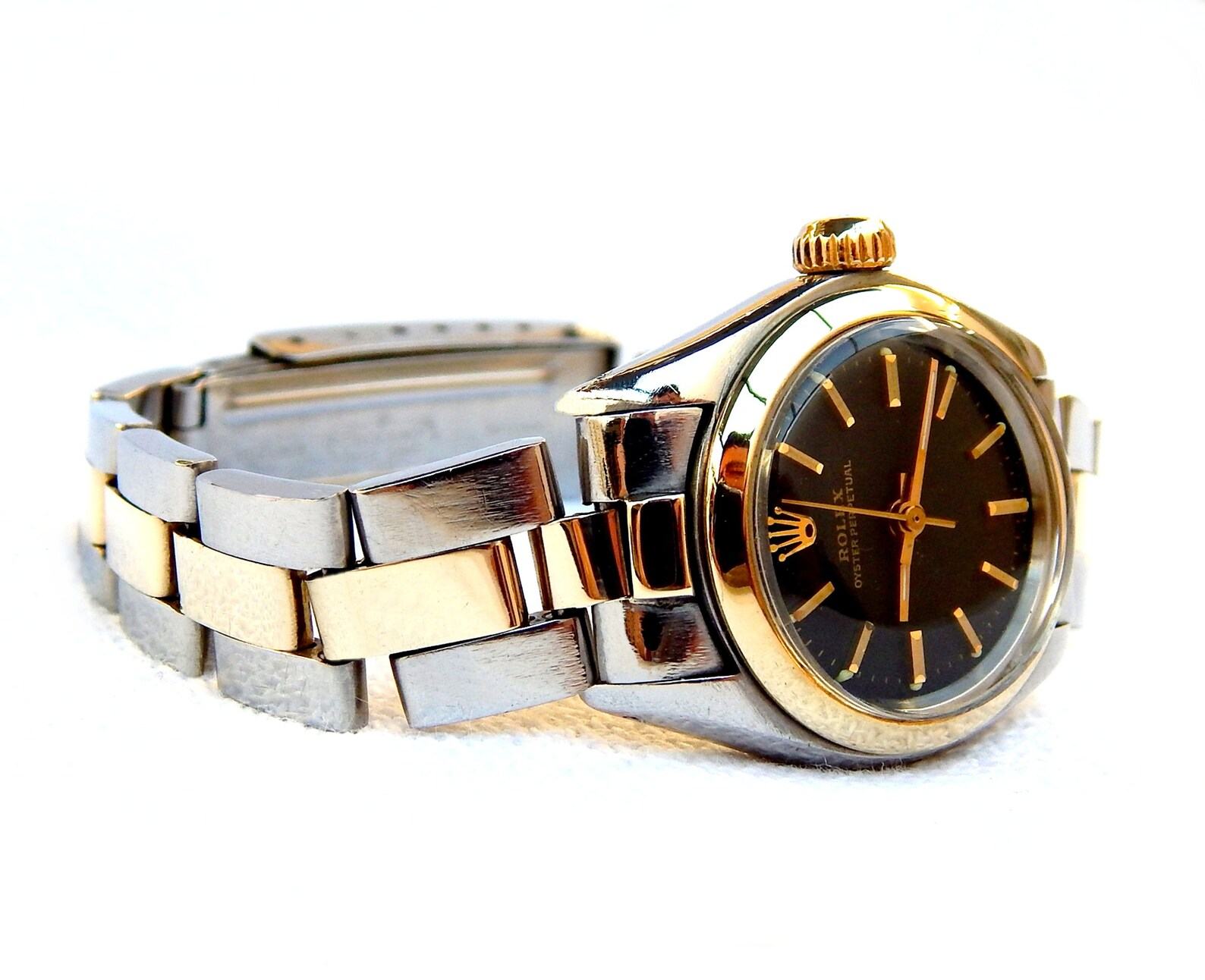 Vintage ROLEX Oyster Perpetual Lady 1980s Steel & 18K Gold Automatic Watch, Box & Papers