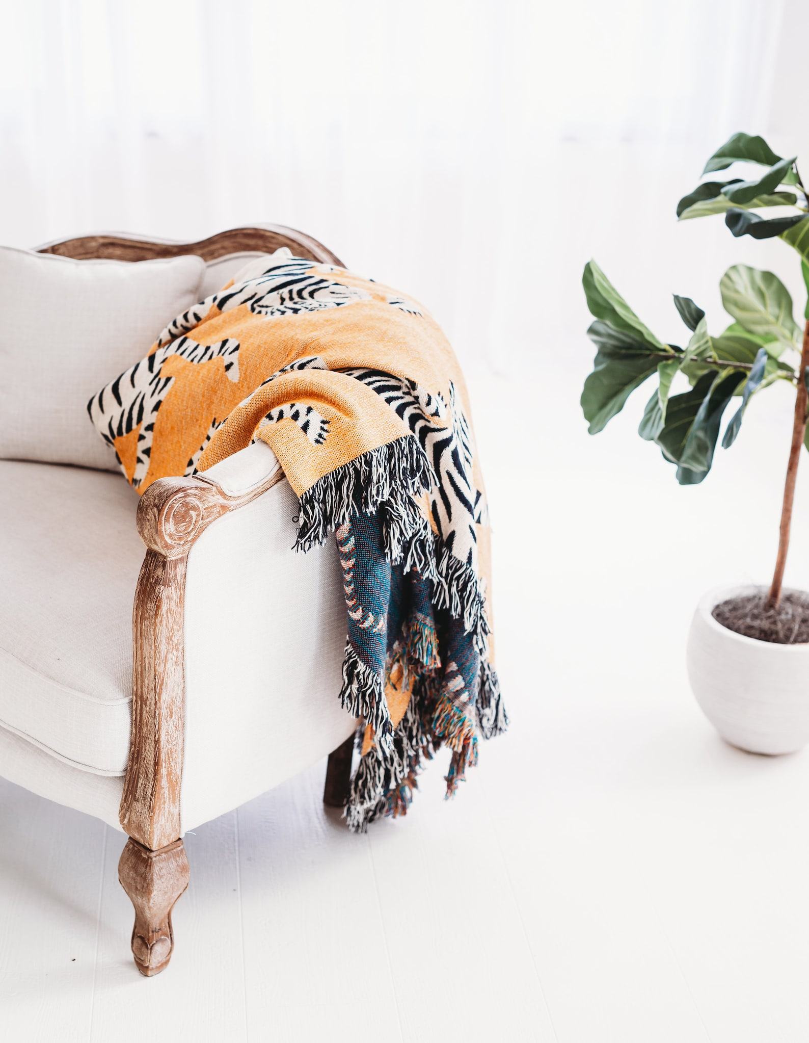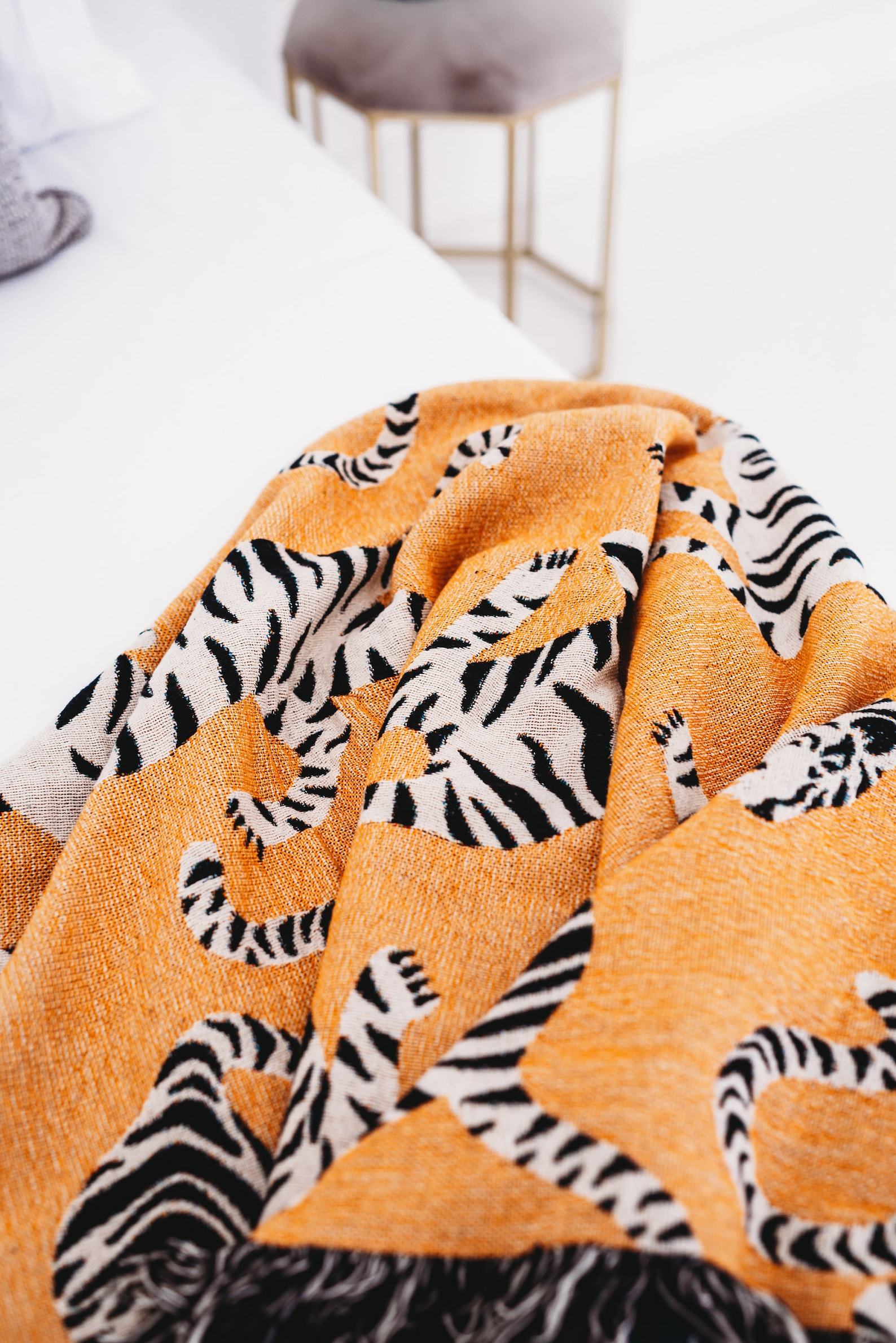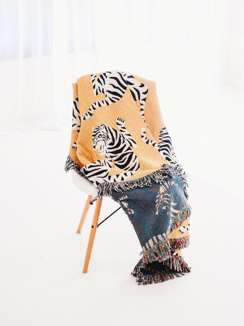 - Snuggle up with this cozy White Tiger Throw Blanket, featuring a captivating woven design of a majestic tiger.