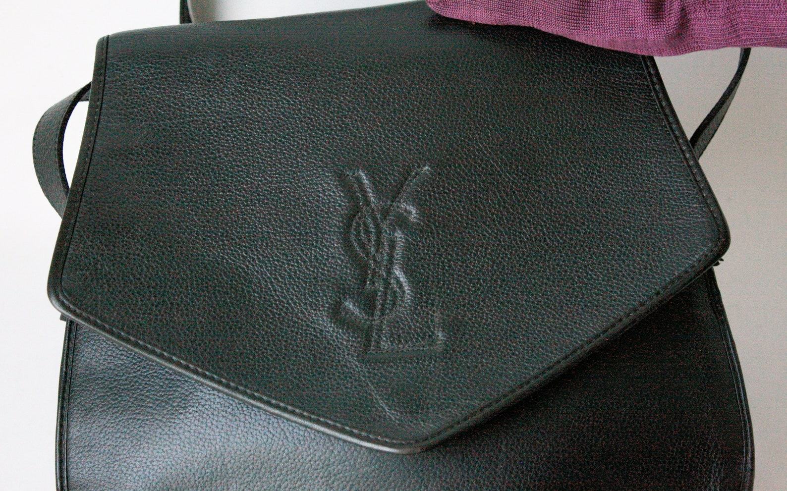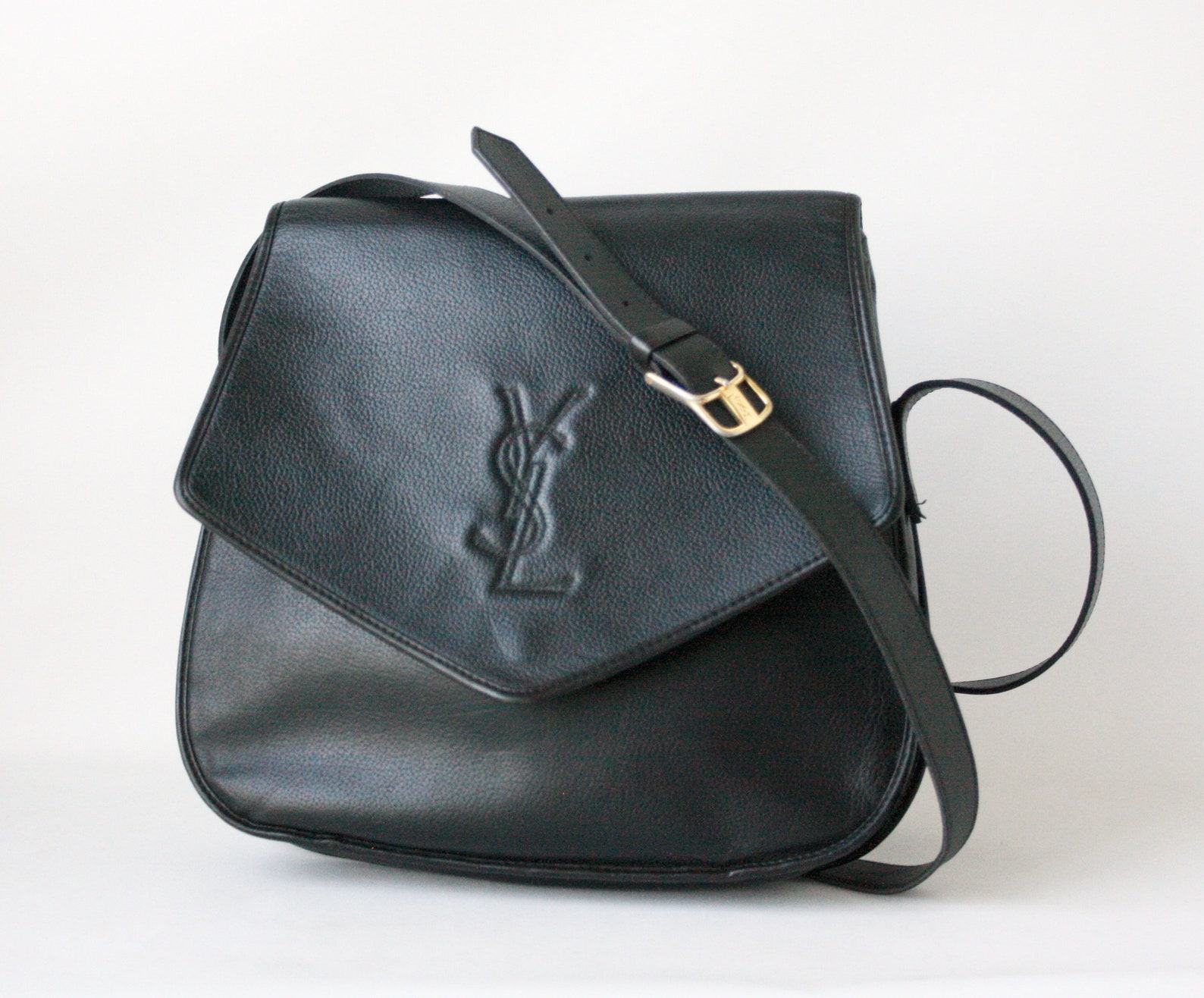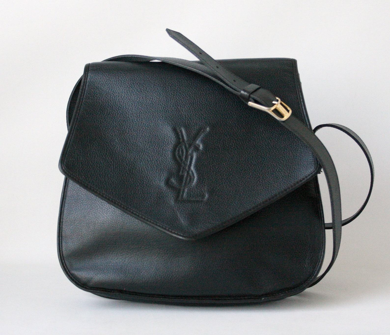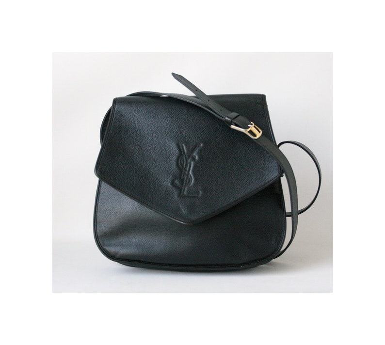 - Iconic Yves Saint Laurent shoulder bag crafted from supple black leather.